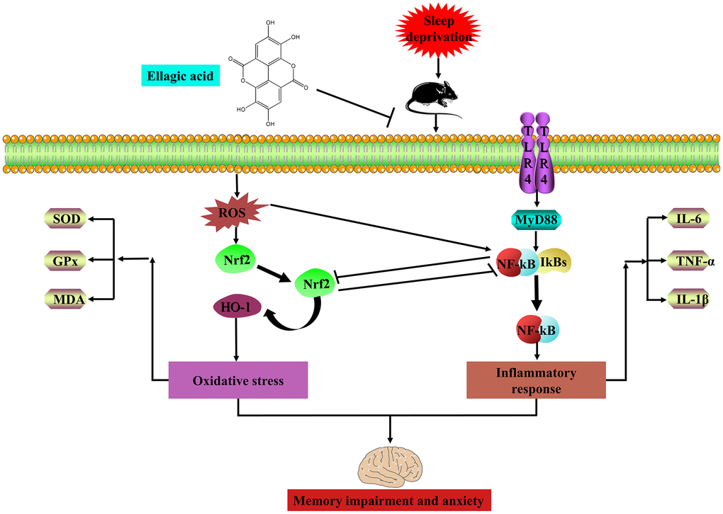 Ellagic acid protects mice against sleep deprivation-induced memory impairment and anxiety by inhibiting TLR4 and activating Nrf2