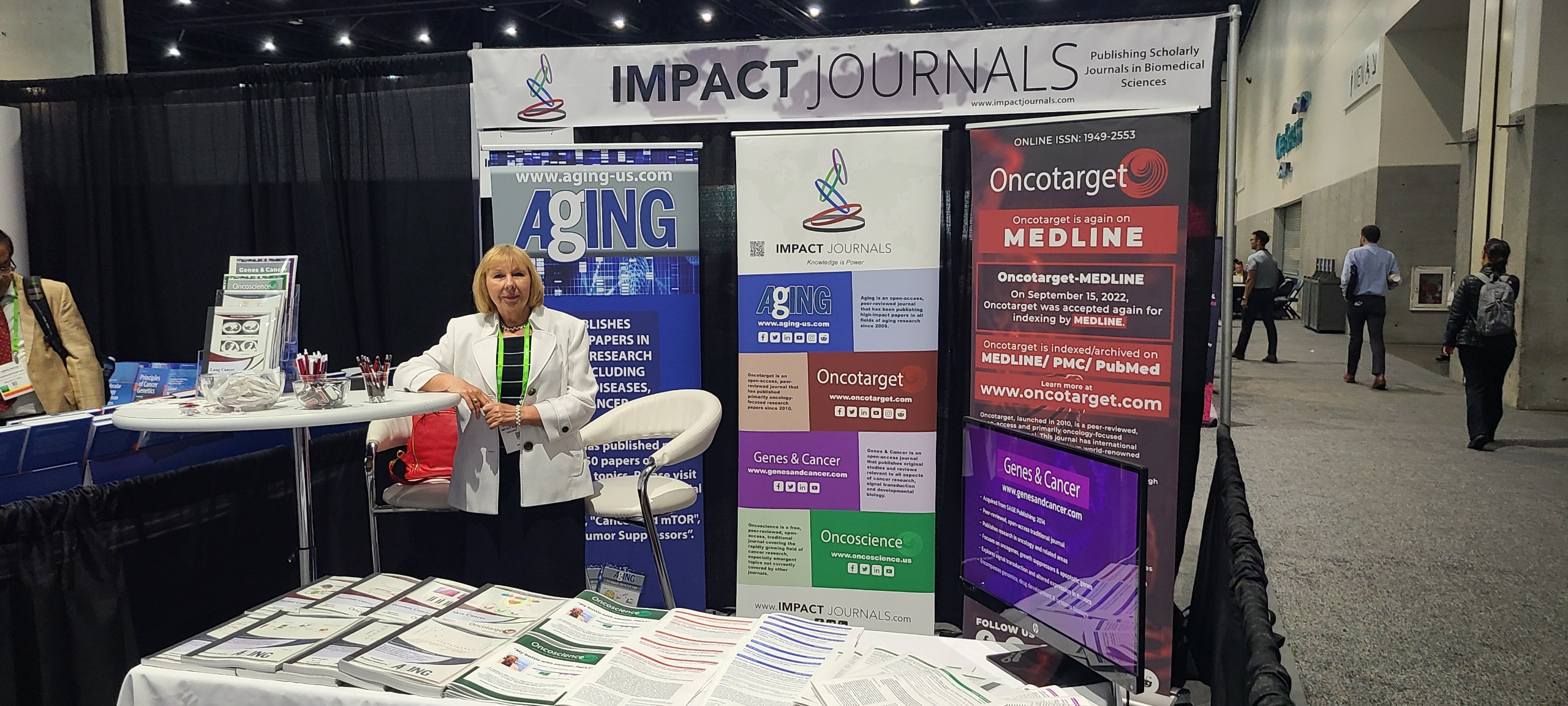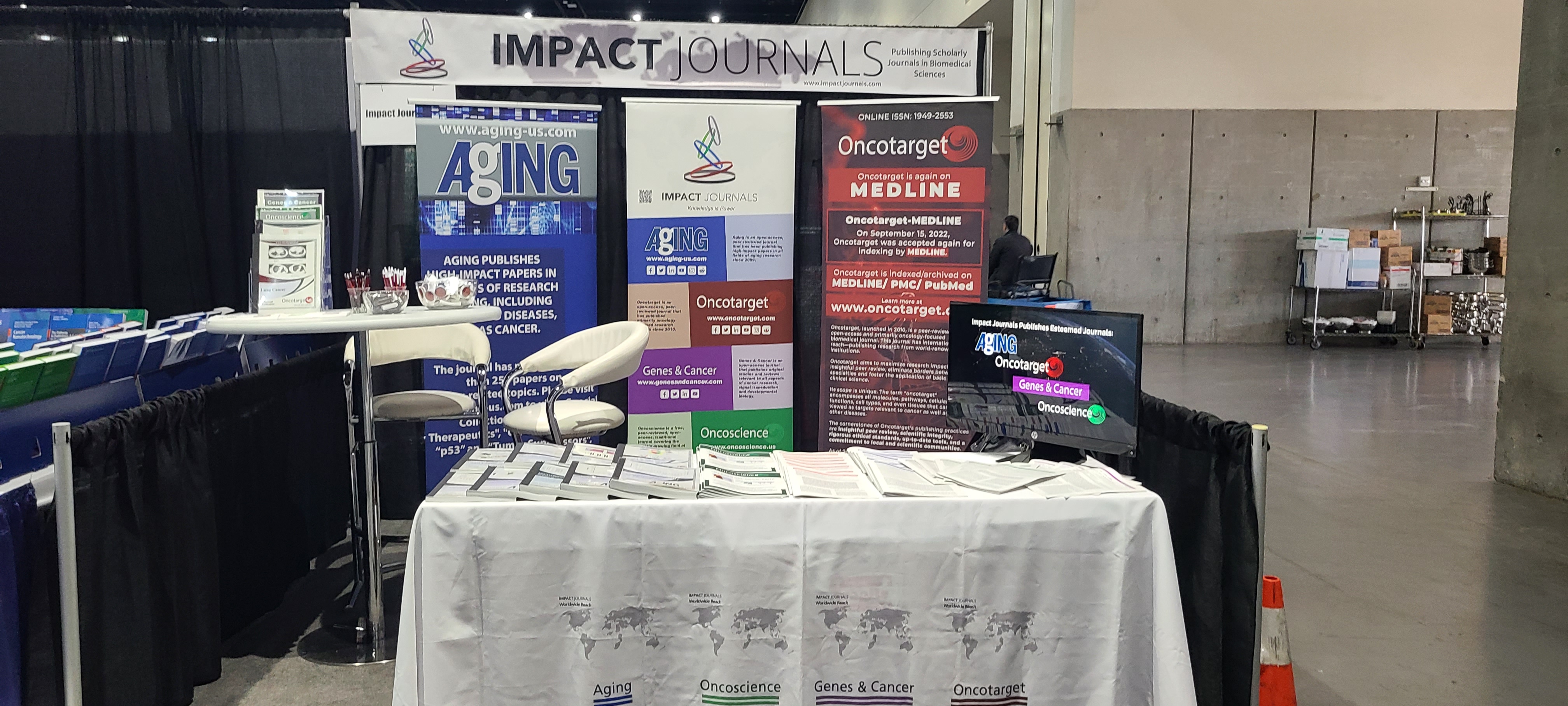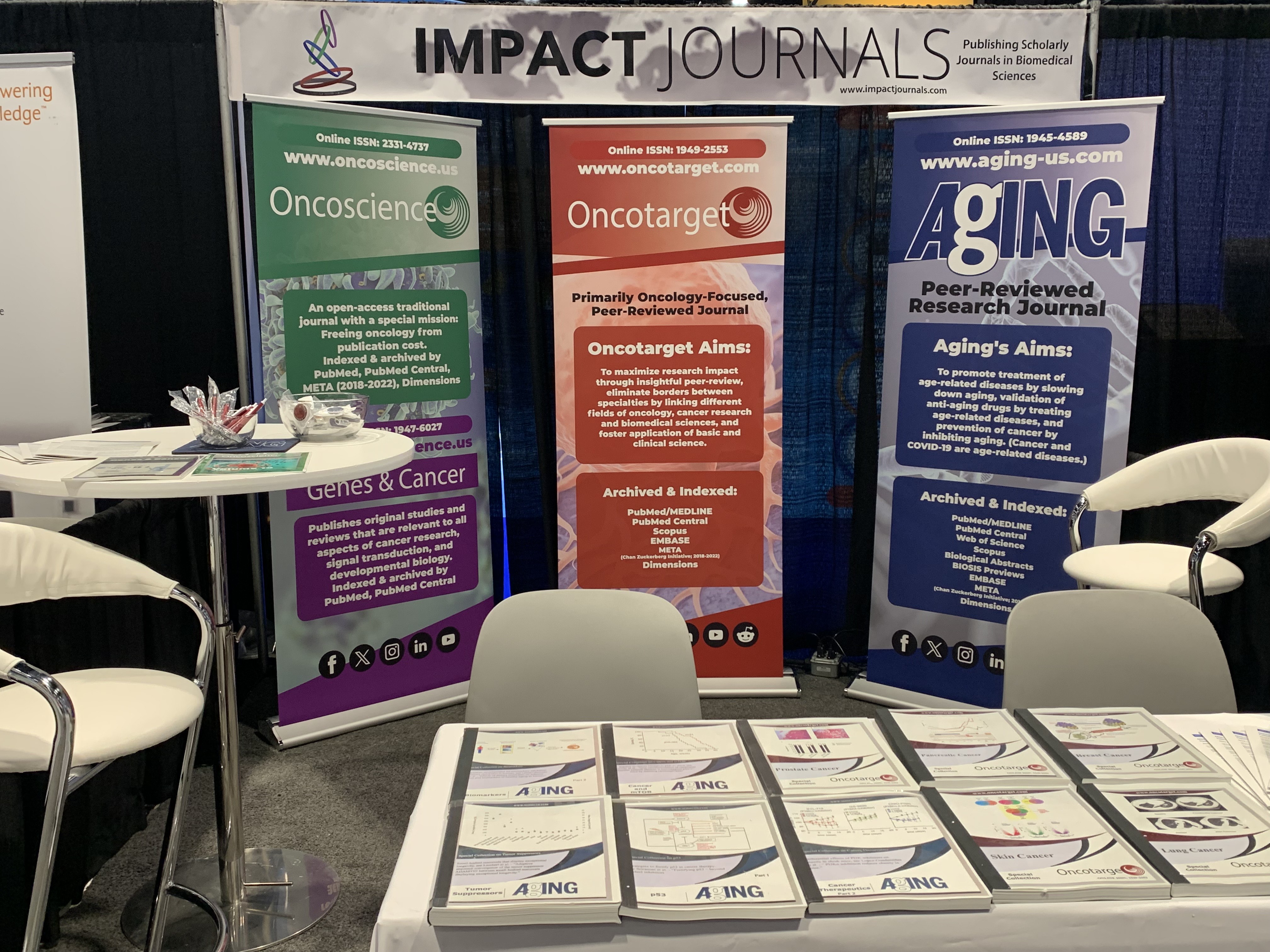 Impact Journals (Aging's publisher) was an exhibitor at the AACR Annual Meeting 2023 in Orlando, FL, USA.