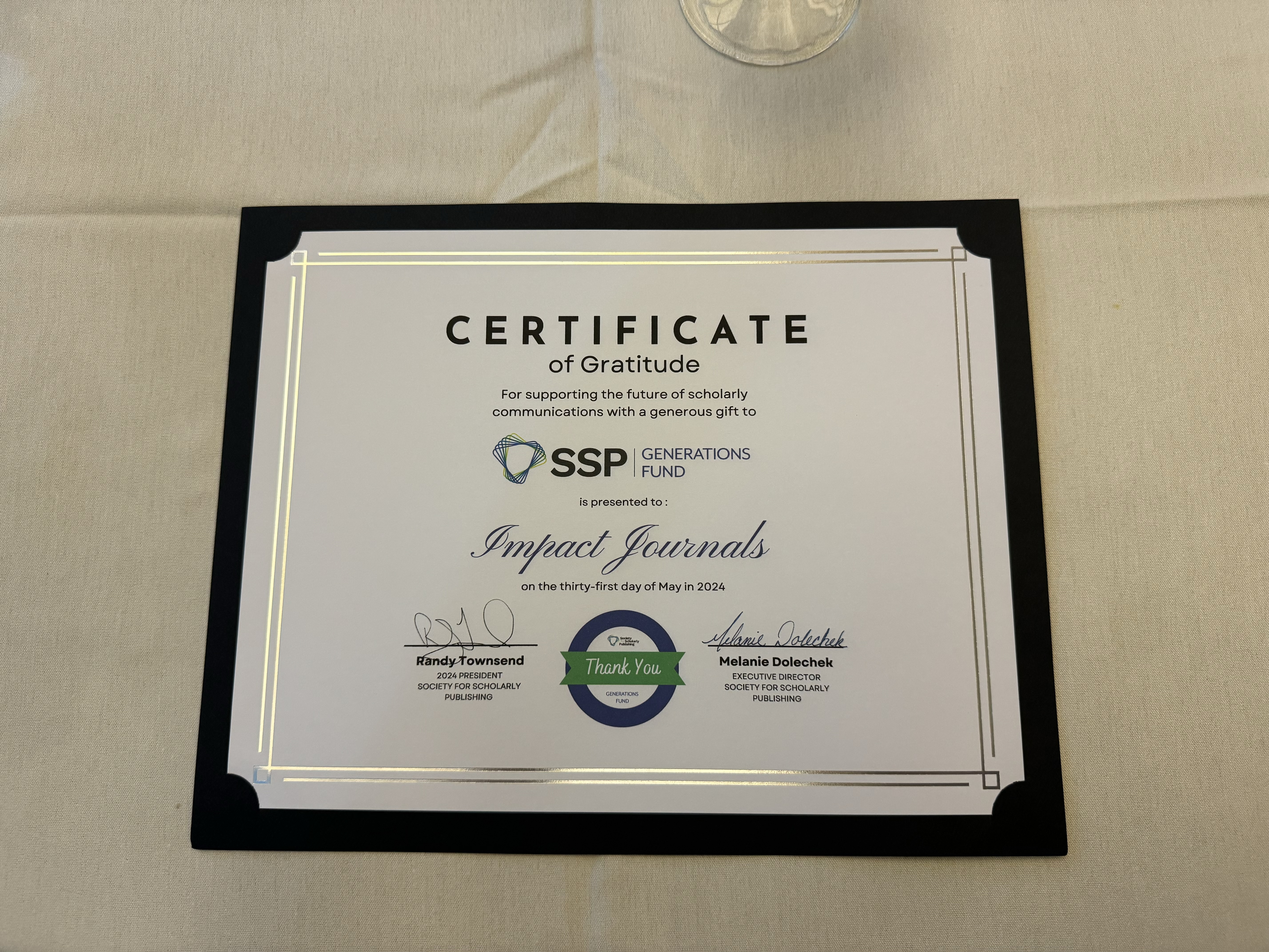Impact Journals was a supporter and exhibitor of the SSP 44th Annual meeting, "Building a More Connected Scholarly Community," in Chicago, IL, USA.